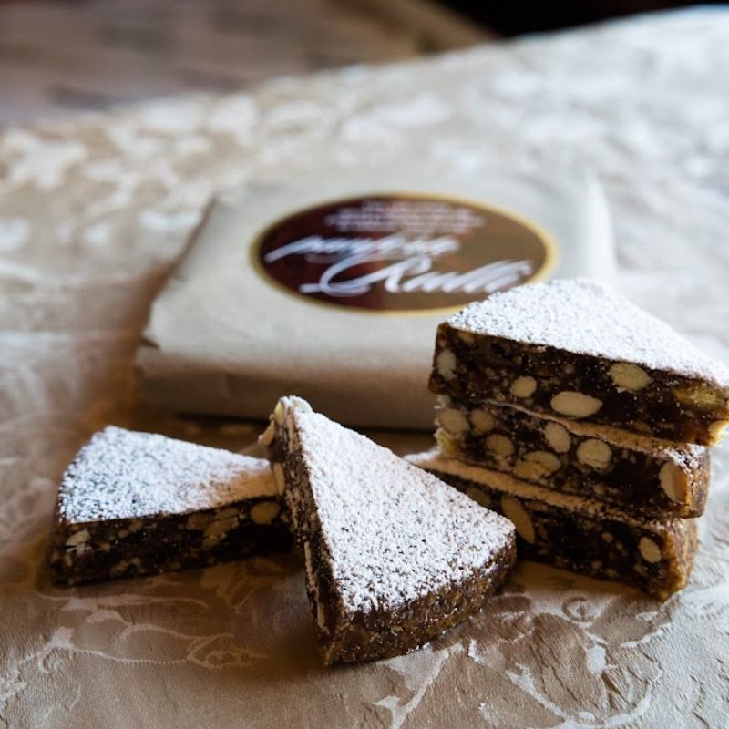 This famous fifteenth century confection from Siena is prepared in our pastry kitchen using the finest imported candied fruits from Italy, which are mixed with honey, toasted almonds, hazelnuts and seven spices. The industrious people of Siena created this nourishing confection for the long-travelling crusaders of the times. One taste and you will see why Panforte Rulli is still so popular today. (Large)